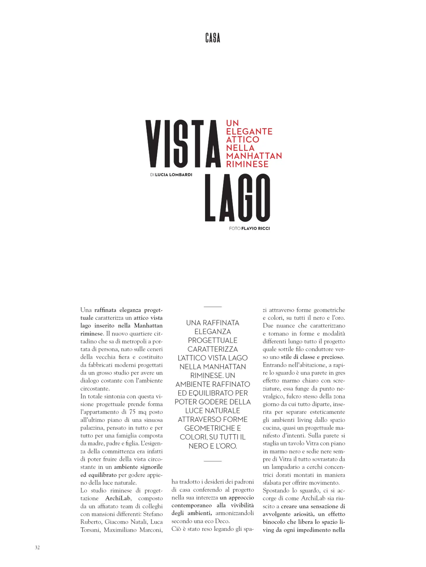 Il nostro progetto “Attico Vista Lago” è stato selezionato e raccontato dalla redazione di IN Magazine Romagna, prestigiosa testata dedicata al lifestyle, al design e alle eccellenze del territorio. Nell’articolo a firma di Lucia Lombardi, con foto di Flavio Ricci, viene descritto il concept progettuale curato da ArchiLab: uno spazio residenziale contemporaneo, elegante e tecnologico, immerso nella nuova cornice urbana dell’ex area fiera di Rimini.